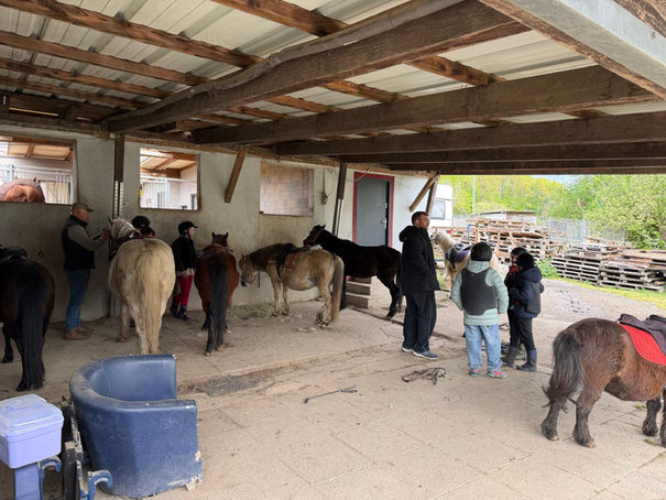 Premier contact avec les poneys, apprendre à les approcher, les brosser et leur prodiguer quelques soins simples.